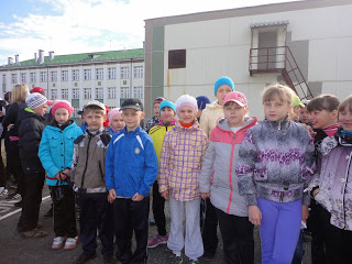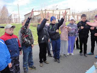 Сначала все эвакуировались на стадион затем все пошли на линейку, на линейке все получили маршруты!